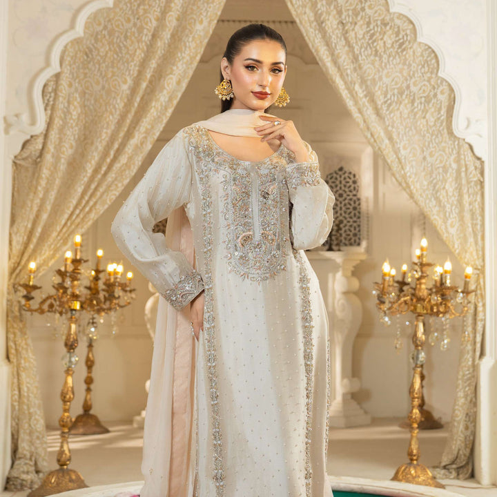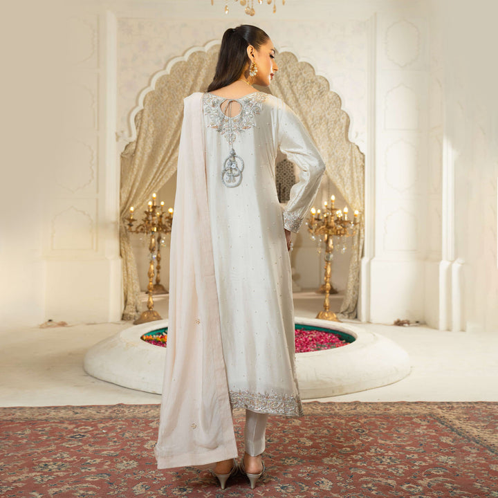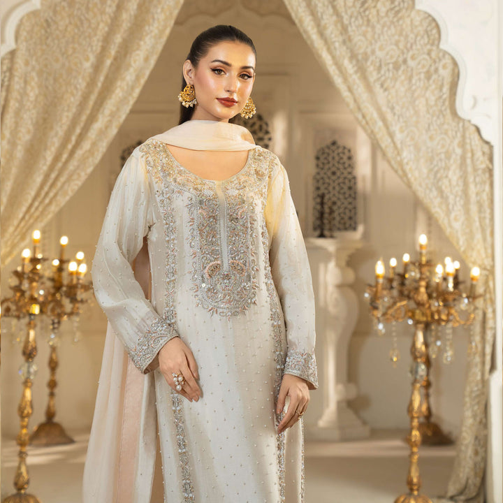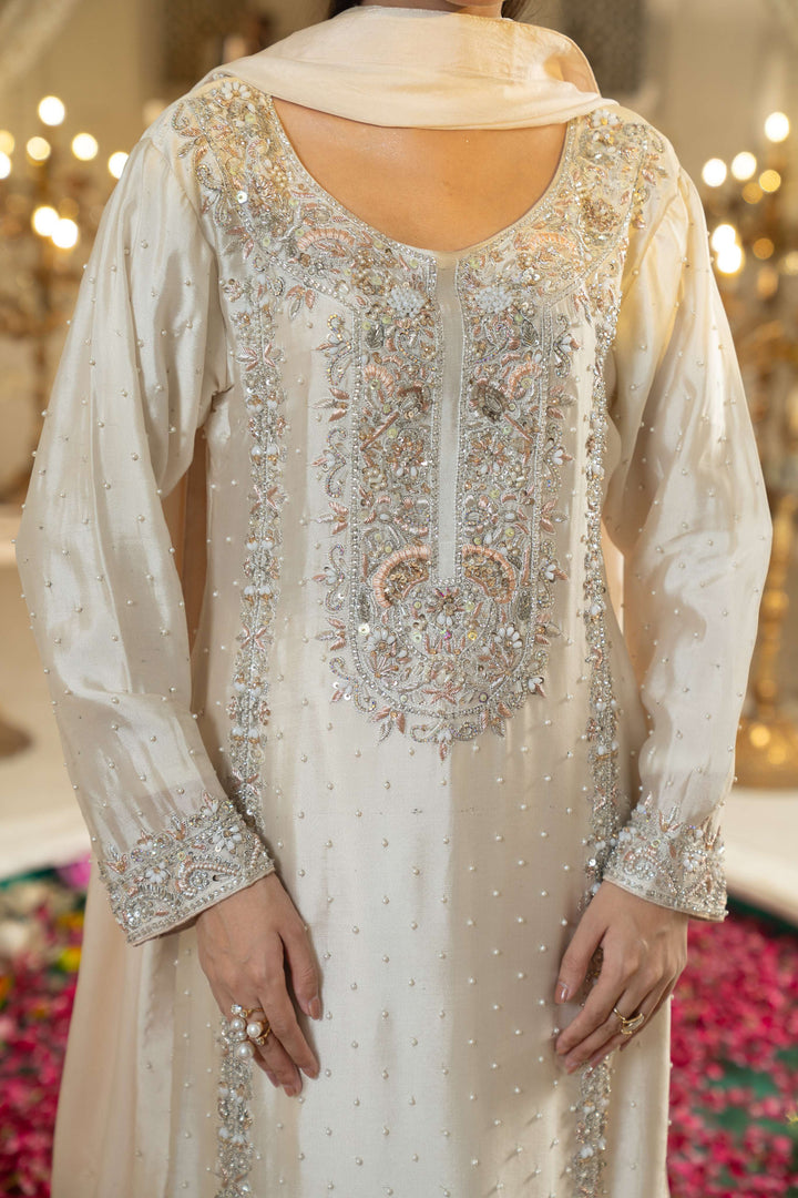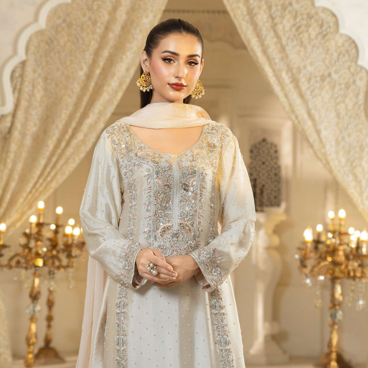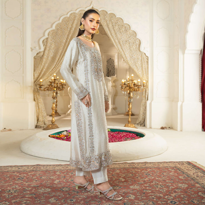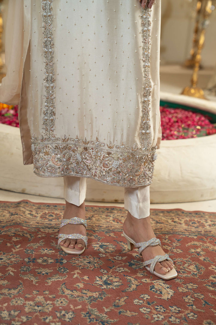 Soft, graceful and effortlessly elegant- this shirt is timeless ddition to your festive wardrobe. The shirt features intricate heavy embroidery, adding delicate texture and charm to the feminine hue. Calming white elegance playing with the delicacy of layering. A delicate to watch, a delicate to wear.