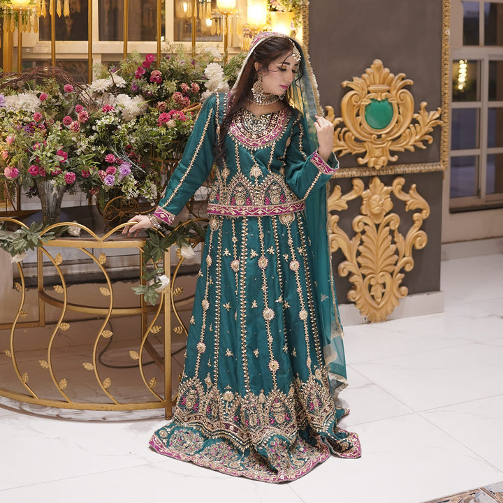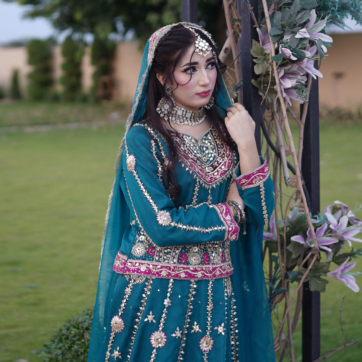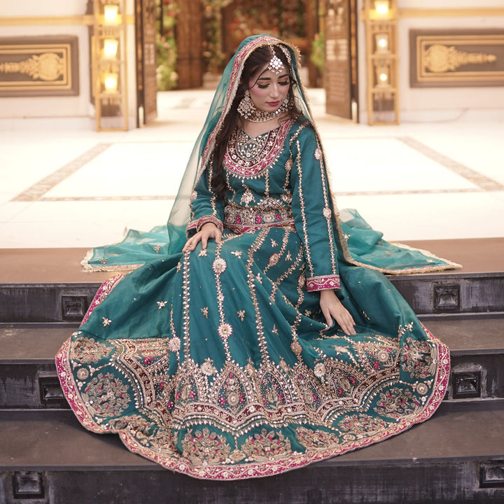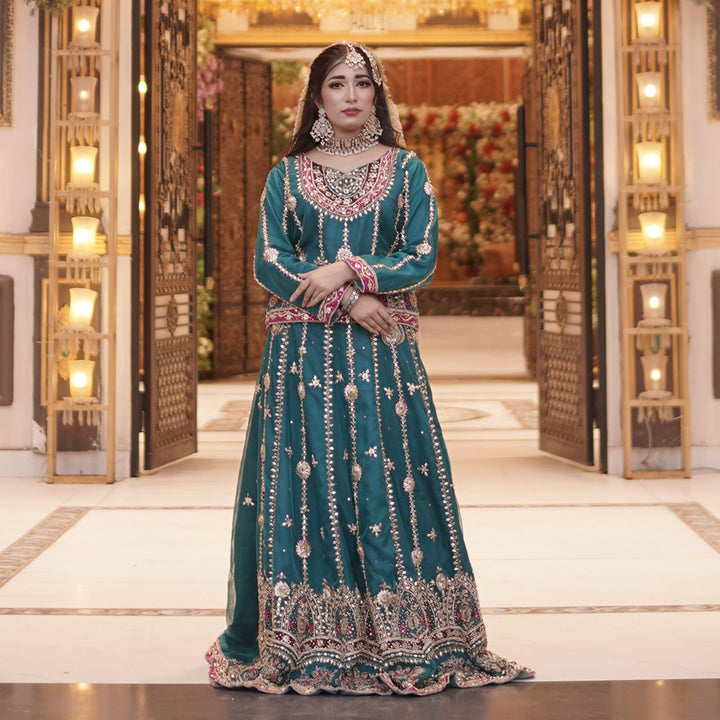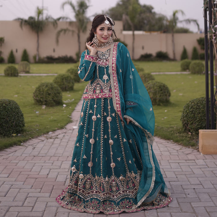 Inspired by classic architectural element and botanical motifs. Our lehnga set is richly embellished with intricate sequins, gotta and shoking colour patchwork. Dubata that pays homage to the eternal beauty. Meticulously embellished with exquisite gotta work along with intricate details of sequins, pearls, dabka and nakshi.