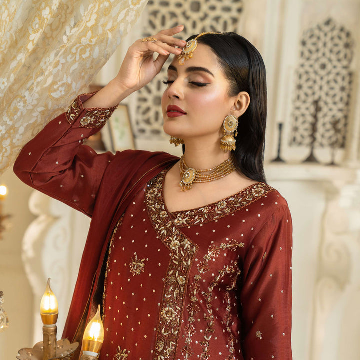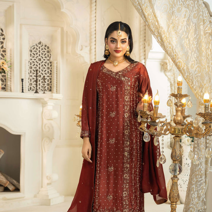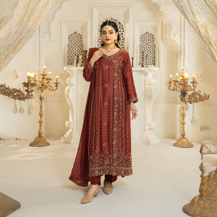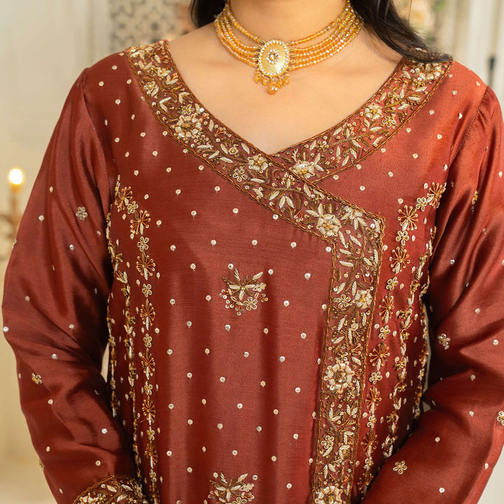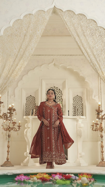 An ensemble designed to elevate your style. Featuring an exquisite shirt, with intricate floral design and embellishments that make you feel a notch above. The floral angrakha is a masterpiece of intricate embellishments.
