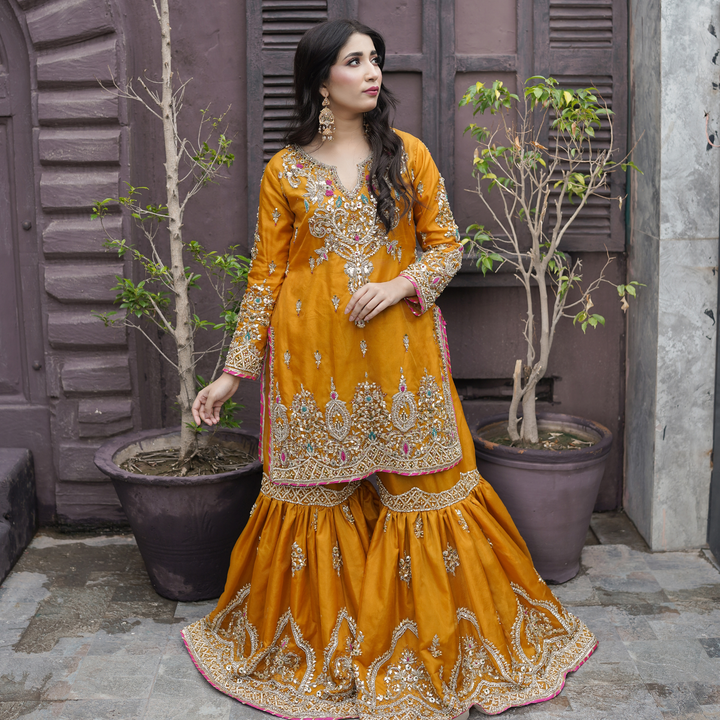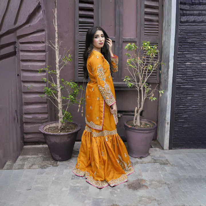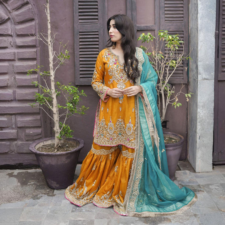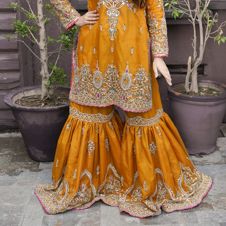 GHARARA HEAVILY FRONT EMBALISHED WITH BACK BORDER